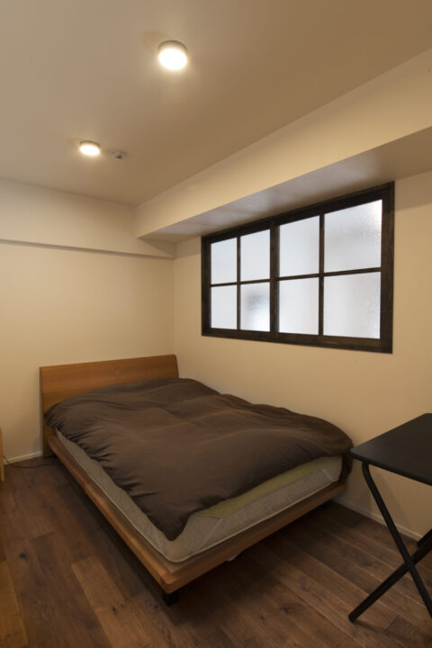 リビング横の居室には、室内窓を採用し圧迫感を軽減。部屋の位置によって窓が少ないマンションでも開放的な空間を実現できる