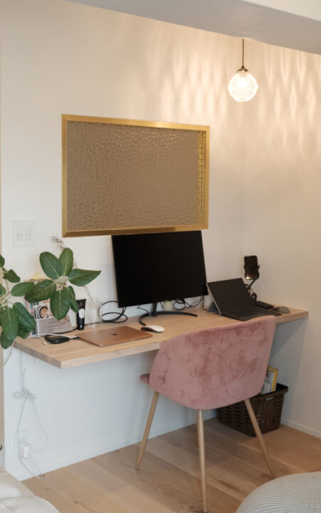 造作で設けたワークスペース。モニターも置ける広々とした空間になっており、ストレスなく仕事が捗る