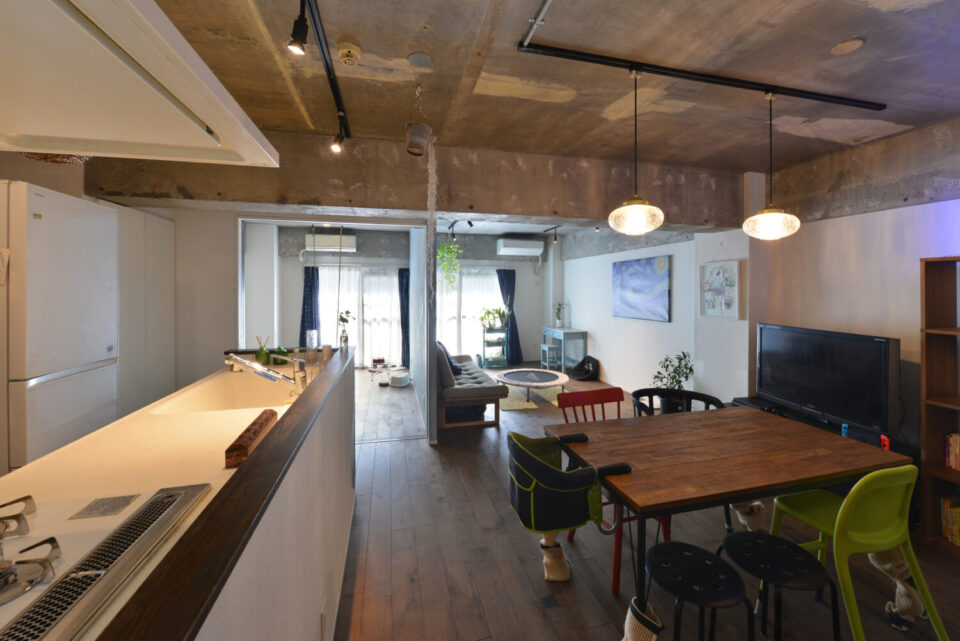 元々あった壁をなくし、開放的な空間に。ただ、全て取り除くのではなく各々の存在感を残した。