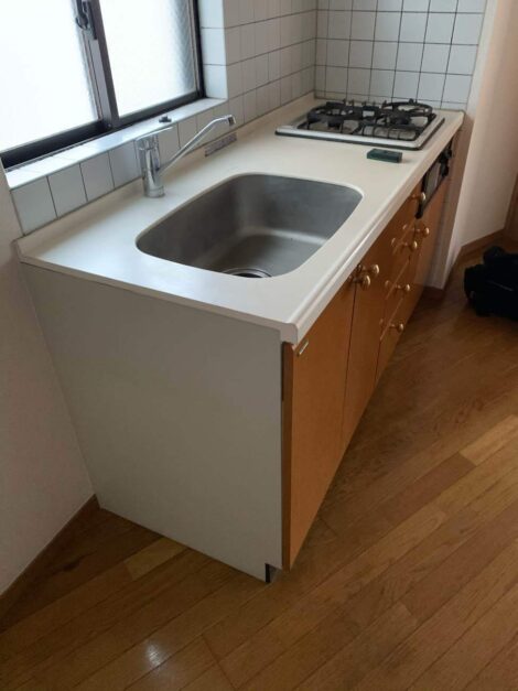 ブルーとヘリンボーンを あしらった北欧のキッチン