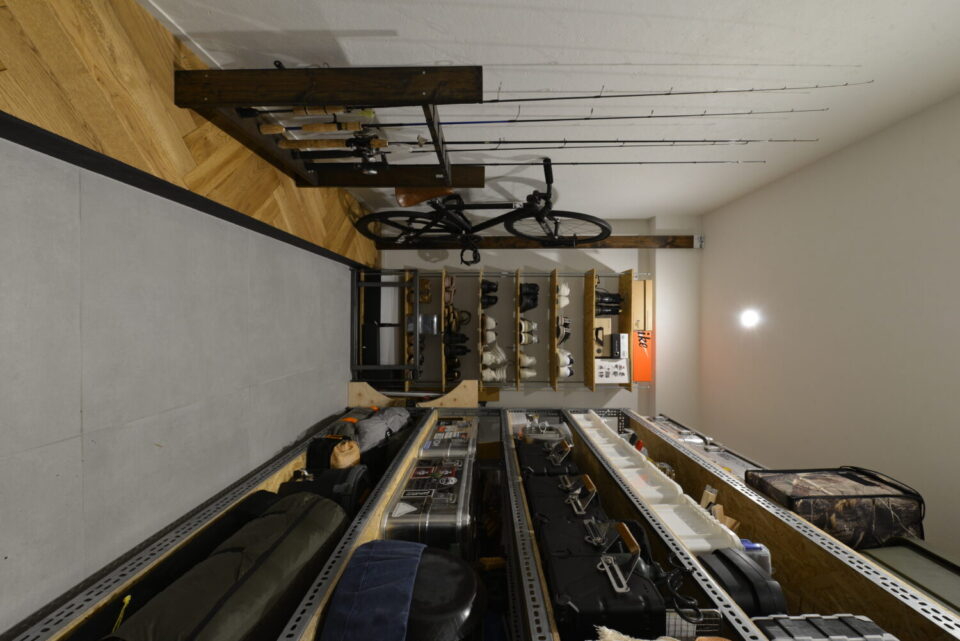 自転車も、釣り道具も、アウトドアギアも。「片付ける」ではなく「置く」感覚で使える土間収納