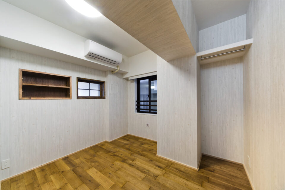 ナチュラルな木目フロアと柔らかな色合いのクロスでまとめた居室。窓からの光がやさしく差し込み落ち着いた時間を過ごせる空間